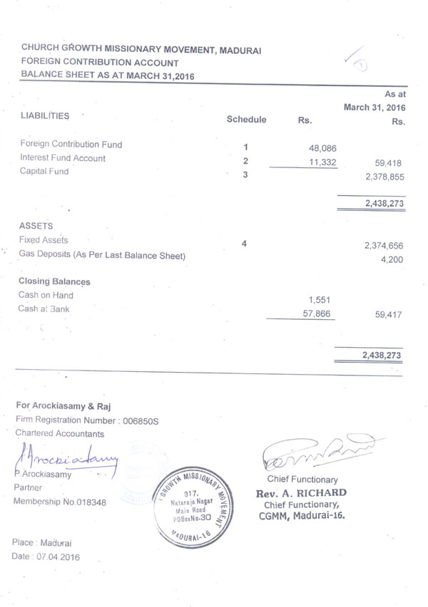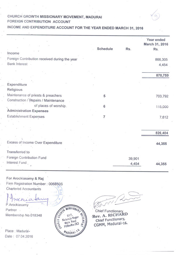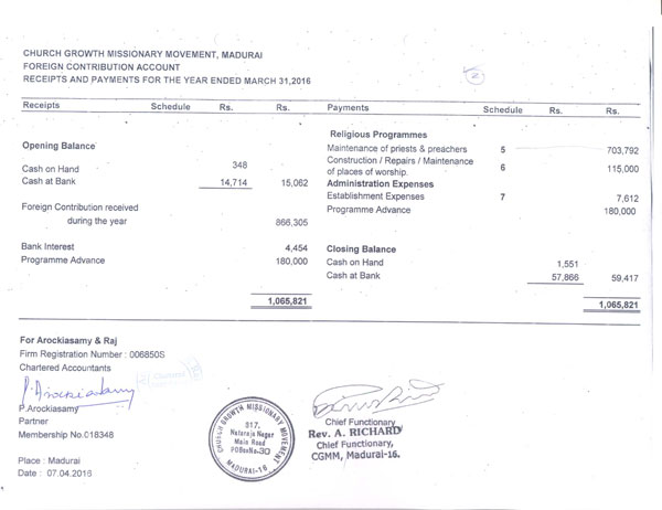 FOREIGN CONTRIBUTION ACCOUNT DETAILS