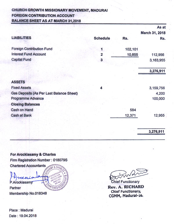 FOREIGN CONTRIBUTION ACCOUNT DETAILS