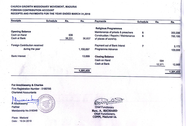 FOREIGN CONTRIBUTION ACCOUNT DETAILS